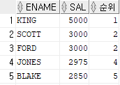 ex) 이름, 월급, 월급에 대한 순위를 출력한다.
